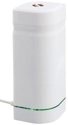 「USB加湿器 KHB-011」は、USBポートから電源を供給する小型の超音波式加湿器。 運転中は本体下部のインジケーターが緑色に点灯し、タンク内の水がなくなると赤に変わる。 本体サイズは81×60×164mm(幅×奥行き×高さ)で、重量は231g。タンク容量は180cc。